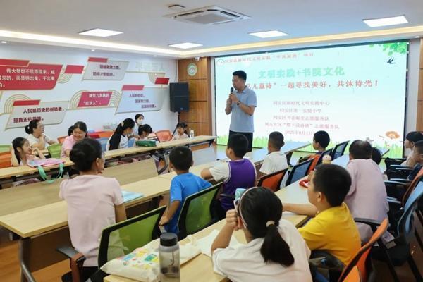 文明風(fēng)8月15日訊 8月13日上午,一場(chǎng)別開生面的“文明實(shí)踐+書院文化 遇見兒童詩(shī)”文明實(shí)踐活動(dòng),在廈門市同安區(qū)新時(shí)代文明實(shí)踐中心舉辦。本次活動(dòng)由中共同安區(qū)委文明辦指導(dǎo),同安區(qū)新時(shí)代文明實(shí)踐中心、同安區(qū)第一實(shí)驗(yàn)小學(xué)、同安區(qū)書香郵差志愿服務(wù)隊(duì)、鳳山社區(qū)“塔下讀詩(shī)班”志愿服務(wù)隊(duì)聯(lián)合舉辦。
