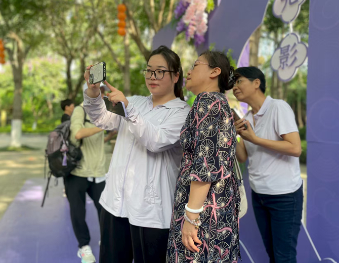 在思明區(qū)新時代文明實踐中心,來自廈門大學嘉庚學院的學生向市民傳授手機攝影技巧。