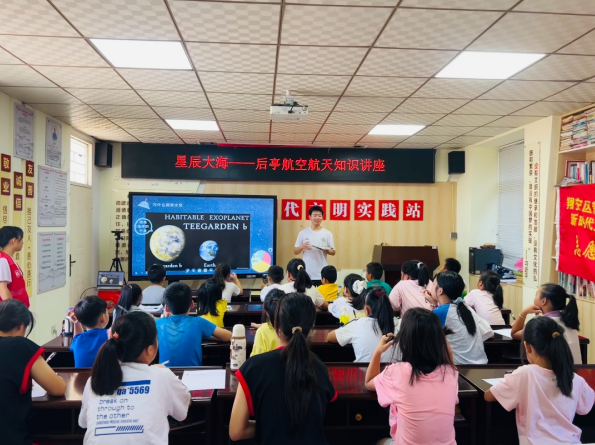 廈門大學志愿者為后亭村村民普及航空航天知識。