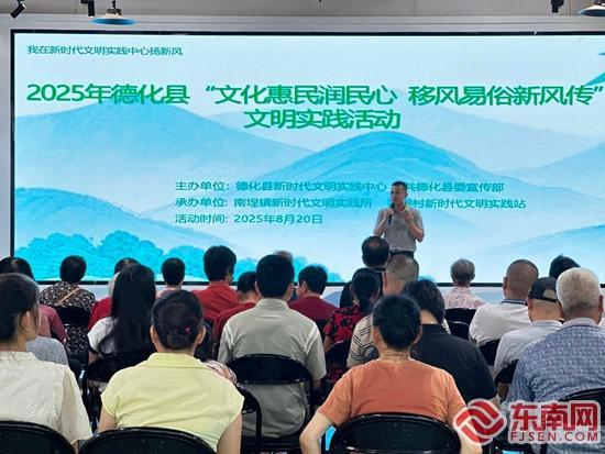 8月20日,德化縣新時(shí)代文明實(shí)踐中心、德化縣委宣傳部(文明辦)、南埕鎮(zhèn)新時(shí)代文明實(shí)踐所聯(lián)合開展“文化惠民潤民心 移風(fēng)易俗新風(fēng)傳”主題宣傳活動(dòng)。