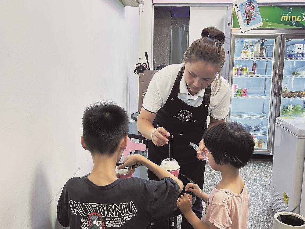 臺(tái)胞“愛(ài)心媽媽”為留守兒童送上入秋的第一杯“專(zhuān)屬”奶茶。