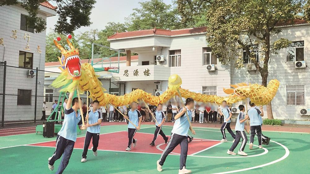 漳州市第十六中學(xué)“青春接力·守護(hù)少年的你”家長(zhǎng)開(kāi)放日,學(xué)生在表演舞龍。