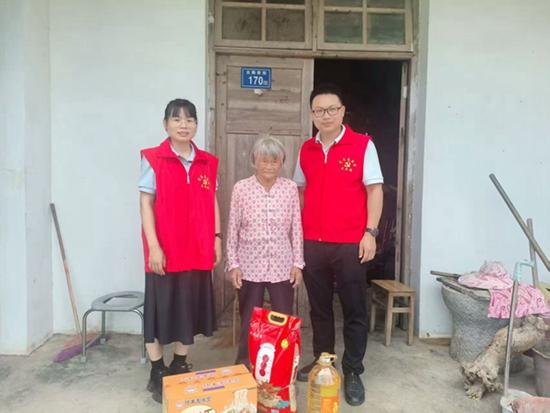 志愿者們帶著大米、食用油等生活物資走訪慰問。吳婉坭 供圖