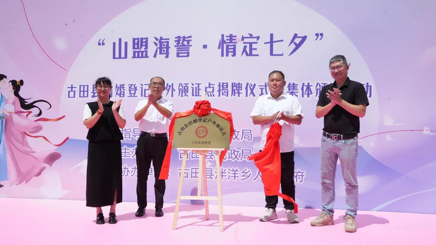 舉行“古田縣結(jié)婚登記戶外頒證點”揭牌儀式。