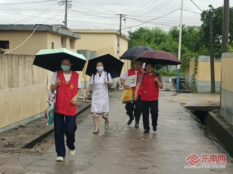 愛心隊和醫(yī)護團隊冒雨入戶義診。盧媽媽愛心隊 供圖