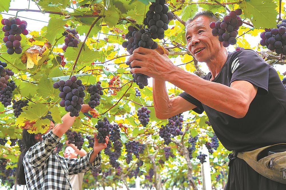 周寧縣純池鎮(zhèn)的葡萄園里,工人將成熟的葡萄從藤蔓上剪下。李何穎 攝