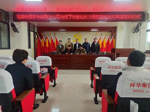 石獅市煙草專賣局(分公司)與邱下村新時代文明實踐站結(jié)對共建簽約儀式。文明建設(shè)股 供圖