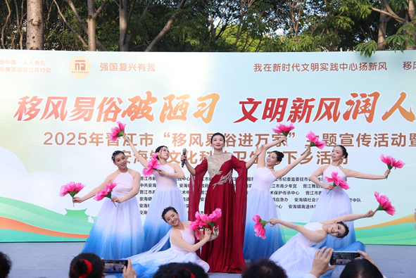 文明風(fēng)9月11日訊 為深入落實(shí)“文明中國?人人有禮”主題傳播活動(dòng)及“明禮福建人”公共文明素養(yǎng)提升行動(dòng)部署要求,把移風(fēng)易俗的“政策聲音”轉(zhuǎn)化為群眾身邊的“生活實(shí)踐”,9月9日下午,“移風(fēng)易俗破陋習(xí) 文明新風(fēng)潤人心”——晉江市“移風(fēng)易俗進(jìn)萬家”主題宣傳活動(dòng)(安海鎮(zhèn)專場)在安海公園熱鬧舉辦?;顒?dòng)創(chuàng)新打造“文明實(shí)踐集市+文藝表演”雙載體,既用趣味服務(wù)拉近距離,又以鮮活藝術(shù)傳遞理念,讓移風(fēng)易俗真正融入群眾日常,讓文明實(shí)踐溫暖浸潤人心。