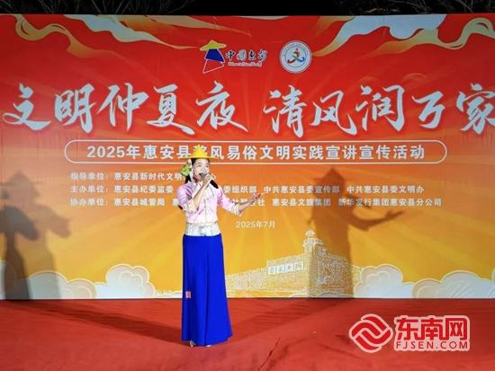 縣體育中心、中新花園、東湖公園、崇武鎮(zhèn)、輞川鎮(zhèn)……縱觀十場活動,實現(xiàn)了從城區(qū)公園到鄉(xiāng)鎮(zhèn)村落的文明覆蓋。每場均以“群眾喜聞樂見、便民利民”為核心,融合文藝展演、主題宣傳、理論宣講、互動游戲等多元形式,讓文明實踐既有“文化味”,又有“生活氣”。文藝展演環(huán)節(jié),傳統(tǒng)與現(xiàn)代元素碰撞交融:惠女服飾秀盡顯惠安本土文化特色,將惠安女勤勞堅韌的精神風(fēng)貌展現(xiàn)得淋漓盡致;閩南四句以詼諧幽默的語言,將移風(fēng)易俗、文明生活等理念融入其中,朗朗上口的句式讓群眾聽得懂、記得住;此外,動感街舞、悠揚閩南語歌曲、驚奇科學(xué)實驗秀、鏗鏘快板、典雅南音、剛?cè)岵奶珮O表演等節(jié)目輪番登場,每場演出都點燃現(xiàn)場氛圍,贏得觀眾陣陣掌聲。