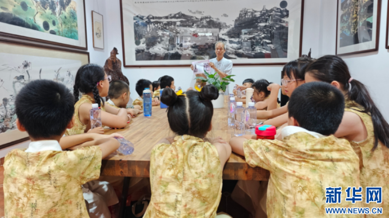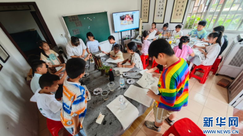 廈門市翔安區(qū)萃英書院里,孩子們跟隨老師的教導(dǎo),學(xué)習(xí)書法與國畫。新華網(wǎng) 劉默涵 攝