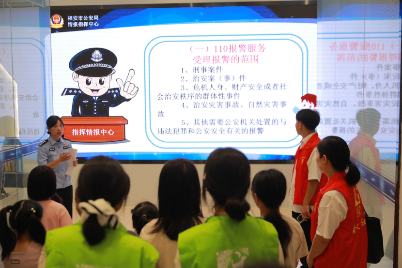 孩子們模擬體驗110報警流程。福安市委文明辦供圖