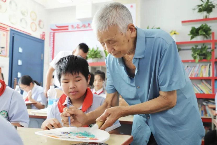 “這把扇子要送給爺爺,他總愛點手機里的鏈接,我要提醒他注意安全?!薄拔乙焉茸铀徒o奶奶,教她區(qū)分網(wǎng)絡上的真假消息?!笨粗约河H手繪制的油扇,孩子們紛紛分享起自己的“送扇計劃”。