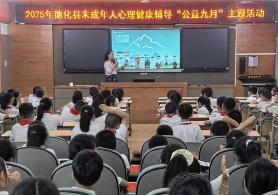 9月18日下午,德化縣龍潯鎮(zhèn)德新社區(qū)聯(lián)合德化縣委宣傳部、縣教育局、縣校外未成年人心理健康輔導(dǎo)站、縣實驗小學(xué)開展“呵護(hù)心靈 陽光成長”未成年人心理健康輔導(dǎo)“公益九月”主題活動。
