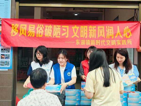 文明風(fēng)9月24日訊 為進(jìn)一步弘揚(yáng)社會(huì)主義核心價(jià)值觀,破除陳規(guī)陋習(xí),遏制不良風(fēng)氣。9月22日,連江縣東湖鎮(zhèn)新時(shí)代文明實(shí)踐所聯(lián)合東湖村新時(shí)代文明實(shí)踐站等在東湖鎮(zhèn)新時(shí)代文明實(shí)踐所開展“移風(fēng)易俗破陋習(xí) 文明新風(fēng)潤人心”主題宣傳活動(dòng)。
