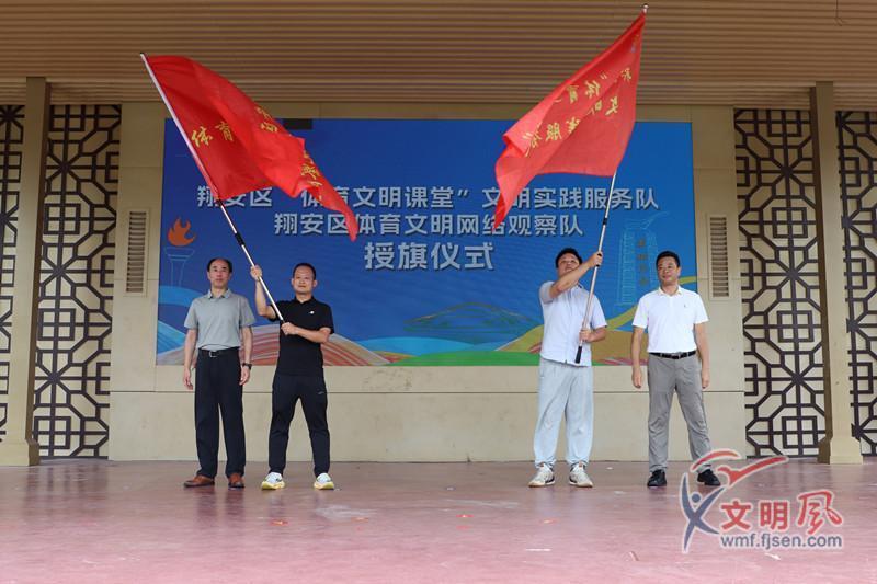 為翔安區(qū)“體育文明課堂”文明實踐服務隊、體育文明網絡觀察隊授旗。劉學佳 攝