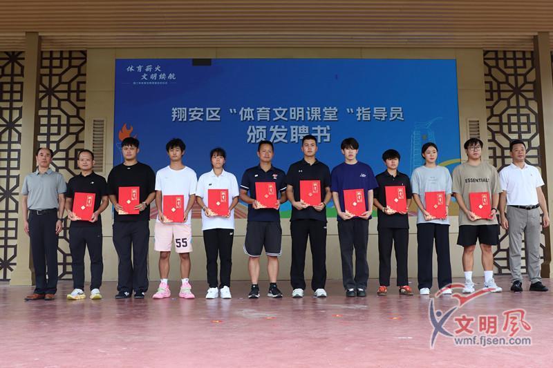 活動現(xiàn)場還為首批10名體育文明課堂指導員頒發(fā)聘書,并為翔安區(qū)“體育文明課堂”文明實踐服務隊、體育文明網絡觀察隊授旗,以及為“體育文明課堂教學點”授牌,標志著廈門市體育文明課堂試點工作正式落地。