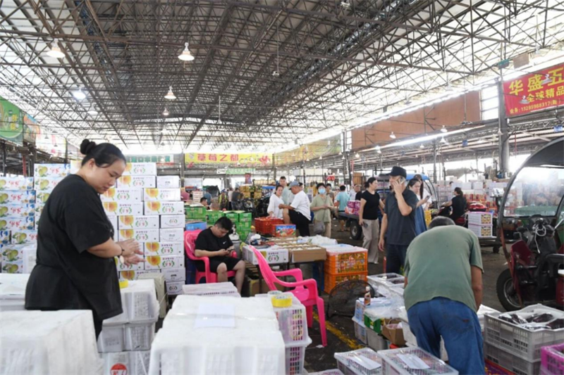 繁忙的海峽果品批發(fā)市場(chǎng)。福州市商務(wù)局供圖