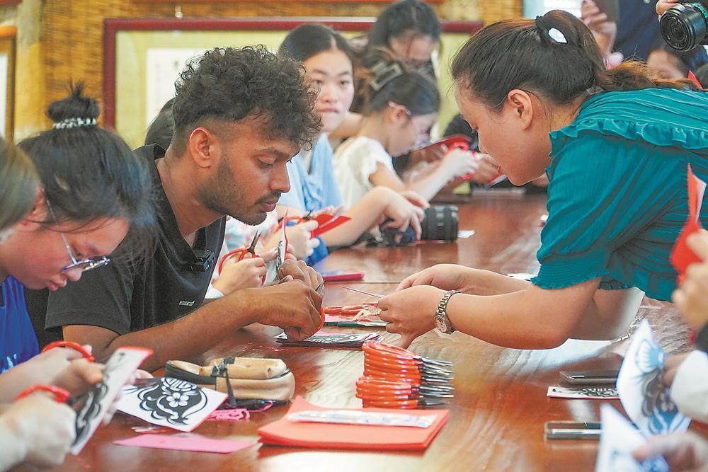 在這些活動(dòng)中,柘榮剪紙不只展示技藝,更通過青年交流、鄉(xiāng)村體驗(yàn)、文創(chuàng)賦能等方式,讓外國(guó)人“動(dòng)手剪一張”,在指尖的律動(dòng)中感受中國(guó)文化的溫度與智慧。而在“走出去”的同時(shí),國(guó)際友人也紛紛慕名而來,探尋剪紙的奧秘。
