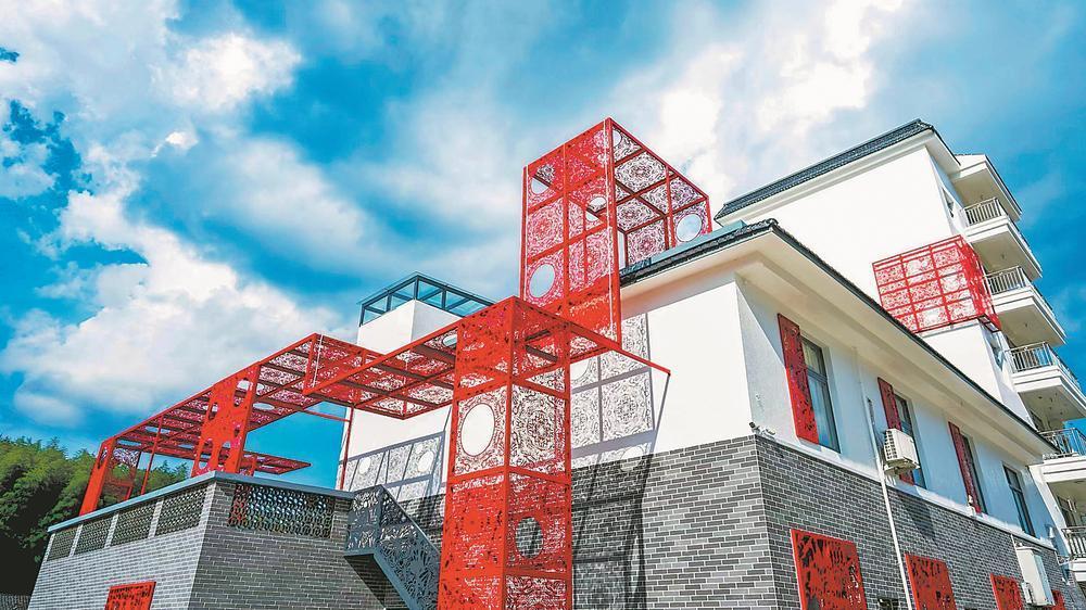 產(chǎn)業(yè)活了,村民富了。村民章小云是有著兩個(gè)孩子的家庭主婦,2018年參加培訓(xùn)后加入非遺傳承隊(duì)伍,如今不僅是村里研學(xué)課程教師,還成為剪紙“八姐妹”的一員,跟著劉延山探索鄉(xiāng)村與非遺碰撞的更多可能?!凹艏埜淖兞舜遄?,也改變了我們的生活?!彼钢鴫ι弦环麨椤段膭?chuàng)田園》的剪紙作品笑著說,“就像田園里,也能種出五彩的花?!?/p>