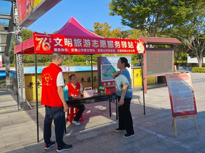 文明風10月9日訊 國慶期間,武夷山市委文明辦積極組織開展文明旅游志愿服務,在武夷山北站、九曲高速出口等人流密集區(qū)域設立“文明旅游志愿服務驛站”,以實體化服務陣地護航市民游客出行,營造文明、安全、有序的旅游氛圍。