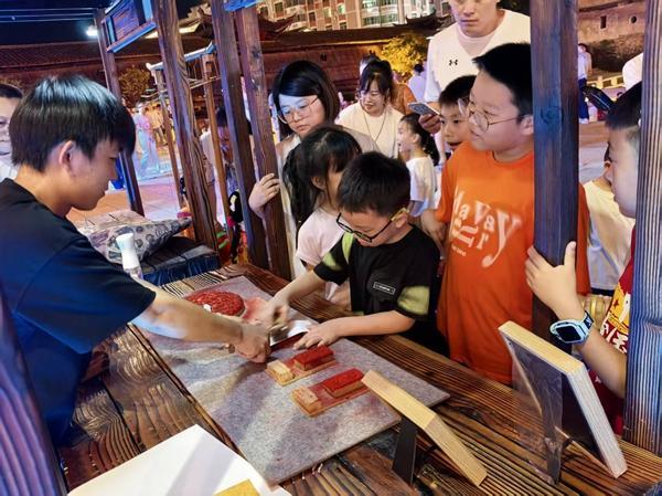 各互動(dòng)體驗(yàn)區(qū)成為全場焦點(diǎn)。在雕版印刷技藝區(qū),家長與孩子共同體驗(yàn)印刷的樂趣;在芷溪花燈技藝區(qū),游客學(xué)習(xí)了花燈的制作工藝;閩西客家木偶戲的互動(dòng)教學(xué)環(huán)節(jié),更是引得男女老少踴躍參與。這種零距離、趣味性的互動(dòng)模式,極大地激發(fā)了群眾的參與熱情,據(jù)統(tǒng)計(jì),活動(dòng)累計(jì)吸引超過2萬余人次參與,現(xiàn)場氣氛熱烈,歡聲笑語不斷。