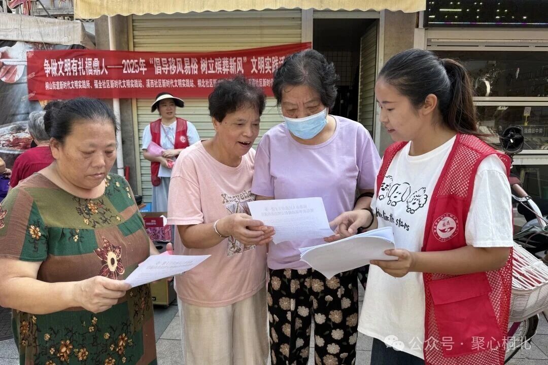 為進(jìn)一步推進(jìn)殯葬改革、革除喪葬陋習(xí),讓移風(fēng)易俗理念融入居民生活,10月13日,寧德福鼎市桐北社區(qū)聯(lián)合桐山街道新時代文明實踐所等多家單位,共同開展2025年“倡導(dǎo)移風(fēng)易俗 樹立殯葬新風(fēng)” 文明實踐活動。活動通過互動問答、政策講解、趣味游戲等多元形式,推動殯葬新風(fēng)尚深入人心,助力形成文明節(jié)儉、綠色低碳的殯葬氛圍,讓文明有禮的福鼎精神風(fēng)貌在細(xì)節(jié)中彰顯。