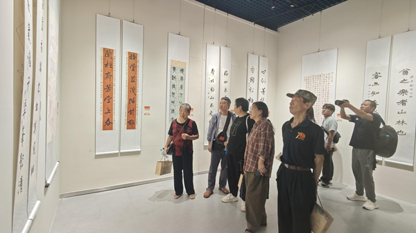 長(zhǎng)者們一同參觀“銀杏百?!睍?shū)畫(huà)展。鼓西街道 供圖