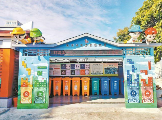 在海滄區(qū)嵩嶼街道貞庵村,垃圾分類屋則兼具功能性與辨識度。村莊主入口處,一座藍(lán)綠相間的“卡通垃圾分類屋”格外引人注目,“藍(lán)爸爸”“綠姐姐”“紅寶寶”“黃媽媽”四組卡通IP形象分別對應(yīng)可回收物、廚余垃圾、有害垃圾和其他垃圾,既清晰指引分類,又成為村莊環(huán)保宣傳地標(biāo)。居民李大姐笑著說,卡通形象讓分類指引更易記憶,村里孩子們尤其感興趣,“先認(rèn)‘角色’再認(rèn)垃圾,記得可快了!”