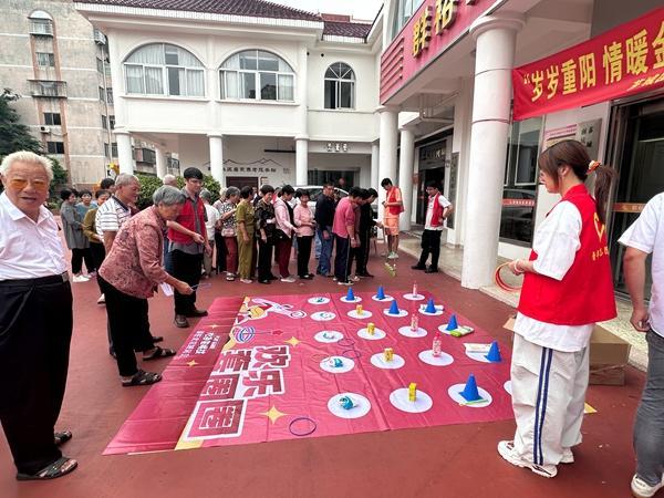 老人們參與“歡樂套圈圈”游戲
