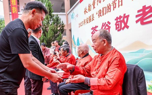 主題活動分為重陽話老、文藝獻老、茶俗敬老、茶禮贈老、愛心助老和茶藝傳承等多個環(huán)節(jié),既融入了安溪傳統(tǒng)茶俗茶禮,又突出體現(xiàn)了“愛老為美、助老為樂、尊老為德、敬老為善”的傳統(tǒng)美德,現(xiàn)場邀請了100多位老年人參與,營造慶祝重陽佳節(jié)的濃厚氛圍。