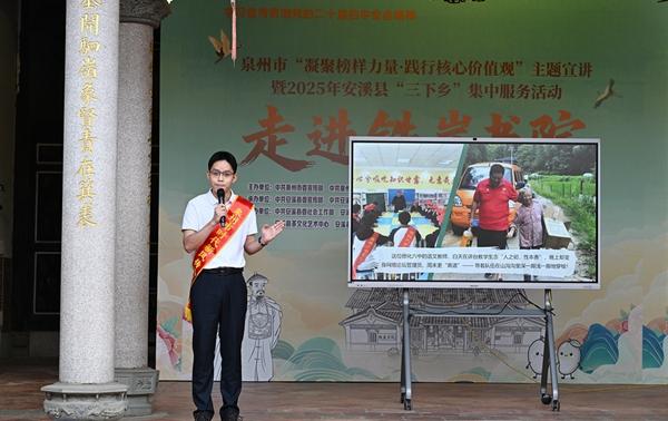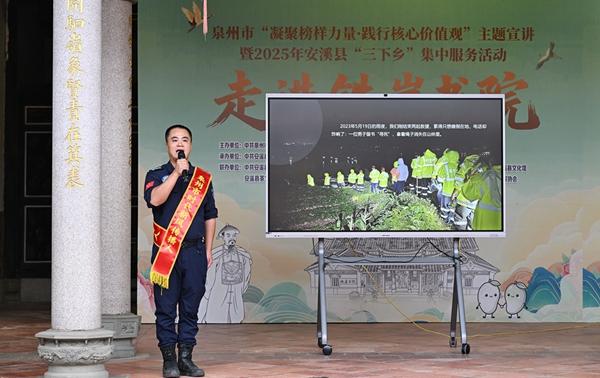 文明風(fēng)10月30日訊 金秋時(shí)節(jié),碩果飄香。10月29日下午,泉州市“凝聚榜樣力量?踐行核心價(jià)值觀”主題宣講(安溪專場(chǎng))暨2025年安溪縣文化科技衛(wèi)生“三下鄉(xiāng)”走進(jìn)鐵崖書院集中服務(wù)活動(dòng)在官橋鎮(zhèn)舉行,旨在推動(dòng)優(yōu)質(zhì)文化資源直達(dá)基層,為父老鄉(xiāng)親們送來文化、科技、衛(wèi)生的惠民服務(wù),助力鄉(xiāng)村振興,共建美好家園。