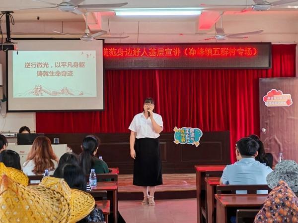 在宣講環(huán)節(jié),四位道德模范與身邊好人的感人事跡依次呈現(xiàn):從黃朝云在平凡身影上的大愛,到胡俊輝閃耀人性光輝的善行義舉;從莊小虹展現(xiàn)的新時代女性擔當,到老黨員陳欠水同志無私奉獻的崇高境界。