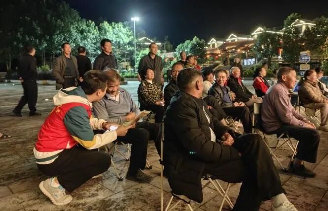 “叔叔阿姨們,農(nóng)用車(chē)載人既違法又不文明,這可是拿生命開(kāi)玩笑!” 在溪源村移民文化廣場(chǎng),宣傳隊(duì)伍搭建起公安夜校,聚焦農(nóng)村交通中的不文明行為與安全隱患展開(kāi)重點(diǎn)講解。宣講中,工作人員用村民身邊的真實(shí)事例敲響警鐘,引導(dǎo)大家摒棄交通陋習(xí)。鄉(xiāng)綜治中心工作人員向村民發(fā)放交通安全宣傳單,耐心解答交通事故處理、鄰里交通糾紛等問(wèn)題,引導(dǎo)群眾以文明方式解決矛盾。