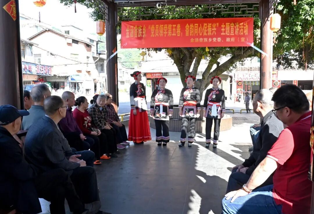 活動在國家級非遺畬族民歌《百鳥朝鳳》中拉開序幕,歌聲傳遞出畬鄉(xiāng)人民對美好生活的向往,展現民族文化的魅力與生機。金涵村黨支部書記雷官永圍繞《習近平談治國理政》第五卷作宣講,結合本鄉(xiāng)實際,用生動語言闡釋中國式現代化對民族地區(qū)發(fā)展的指導意義。