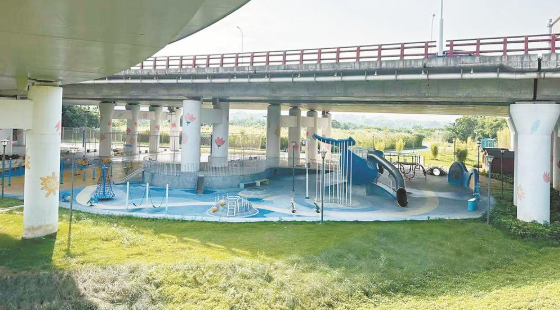 金峰大橋下空地成為附近居民的休閑娛樂場所。
