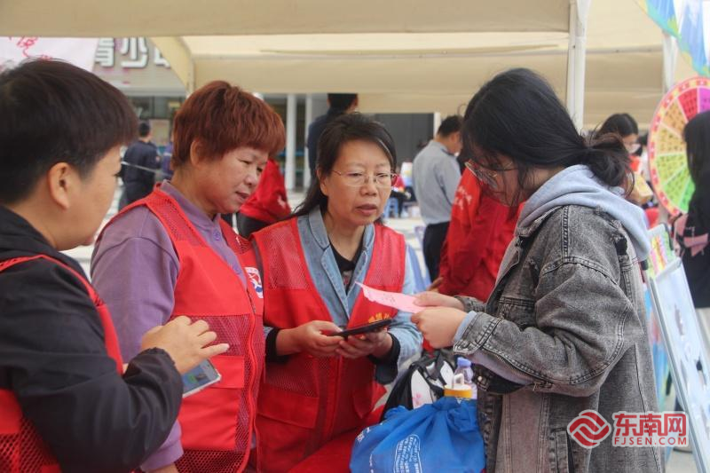 志愿者向市民宣傳文明知識(shí)。東南網(wǎng)記者 李霖 攝