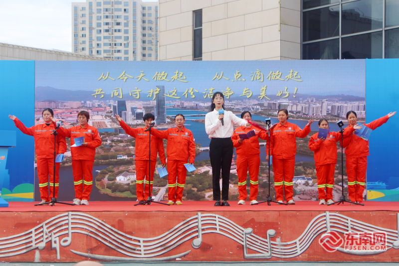 文明勸導(dǎo)員代表宣讀《文明倡議書》。東南網(wǎng)記者 李霖 攝