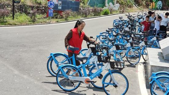 志愿者在擺共享單車(chē)。德化縣委文明辦 供圖