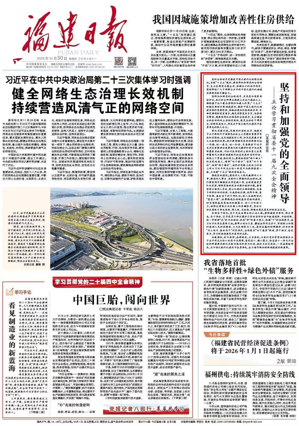 《福建日?qǐng)?bào)》2025年11月30日第01版
