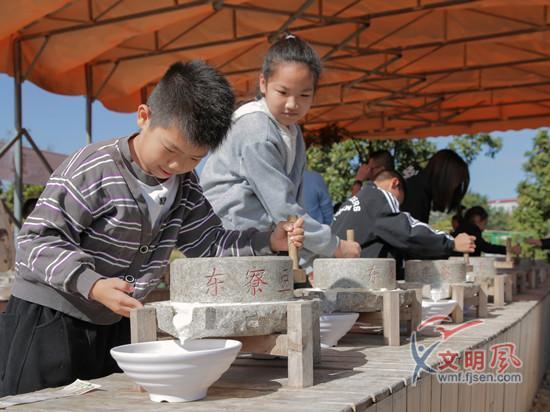 體驗石磨豆?jié){。翔安區(qū)委文明辦 供圖