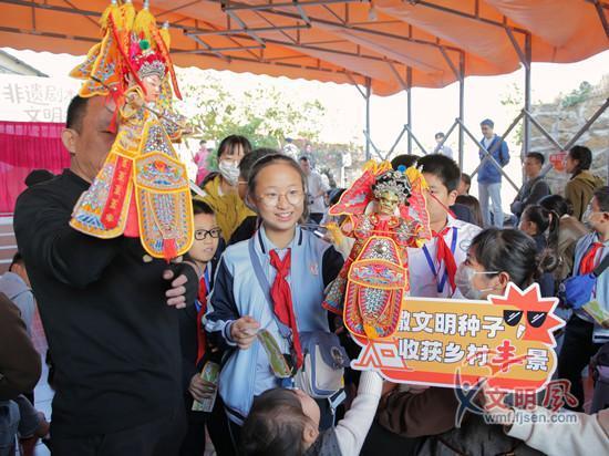 展演區(qū)的精彩節(jié)目更是讓人目不暇接,車鼓弄、答嘴鼓、布袋戲、歌仔戲等充滿閩南特色的非遺節(jié)目輪番上演,借助非遺展演傳遞文明理念?;顒又?,非遺代表性傳承人還向兩所學校學生代表贈送了農(nóng)民畫,讓非遺文化與精神文明建設實現(xiàn)有機融合、雙向賦能。