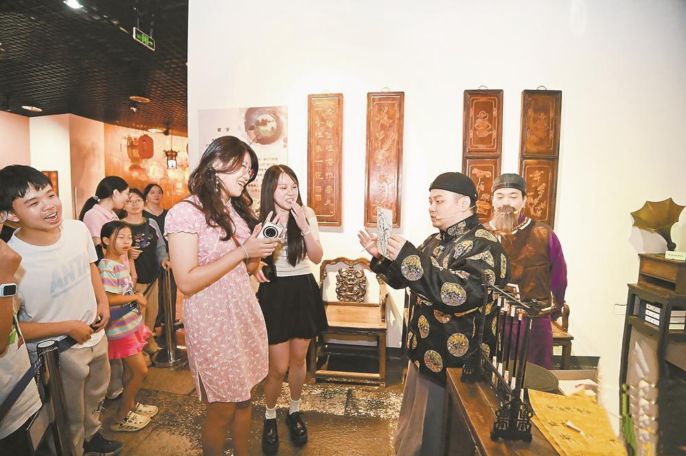 今年7月19日,廈門市博物館聯(lián)合本土喜劇廠牌“來瘋喜劇”,推出全國首個原創(chuàng)沉浸式喜劇劇本游《廈博有戲?閩南往事》(以下簡稱《廈博有戲》)。4個多月來,8場演出場場爆滿,累計吸引超28萬人次走進廈門市博物館,國慶中秋假期全館參觀人數(shù)同比增長68%。