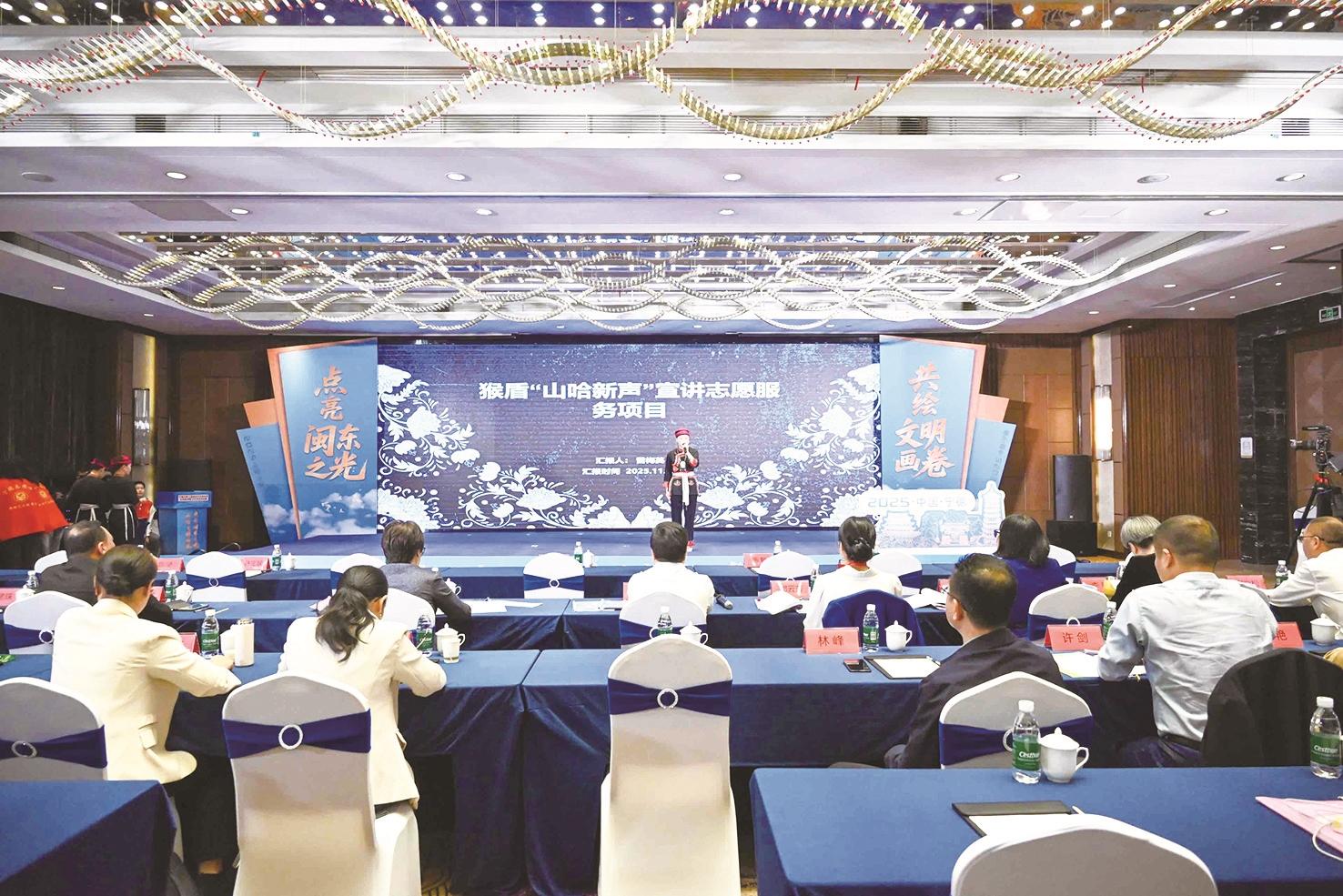 2025年11月12日,蕉城區(qū)八都鎮(zhèn)猴盾“山哈新聲”宣講志愿服務(wù)項(xiàng)目榮獲寧德市第二屆新時(shí)代文明實(shí)踐優(yōu)秀案例展示交流活動(dòng)(決賽)金獎(jiǎng)。
