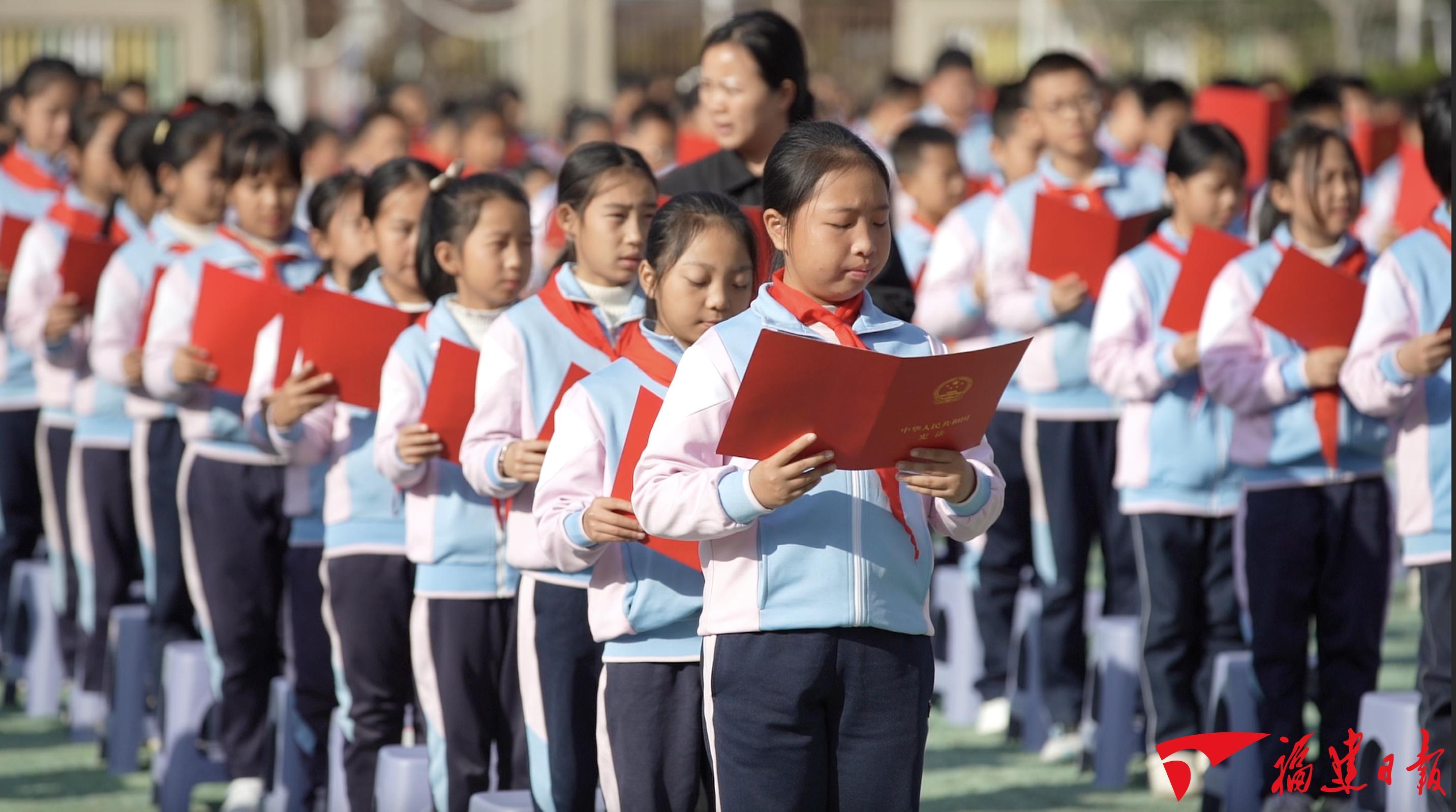 寧化名遠(yuǎn)小學(xué)師生誦讀憲法條文。