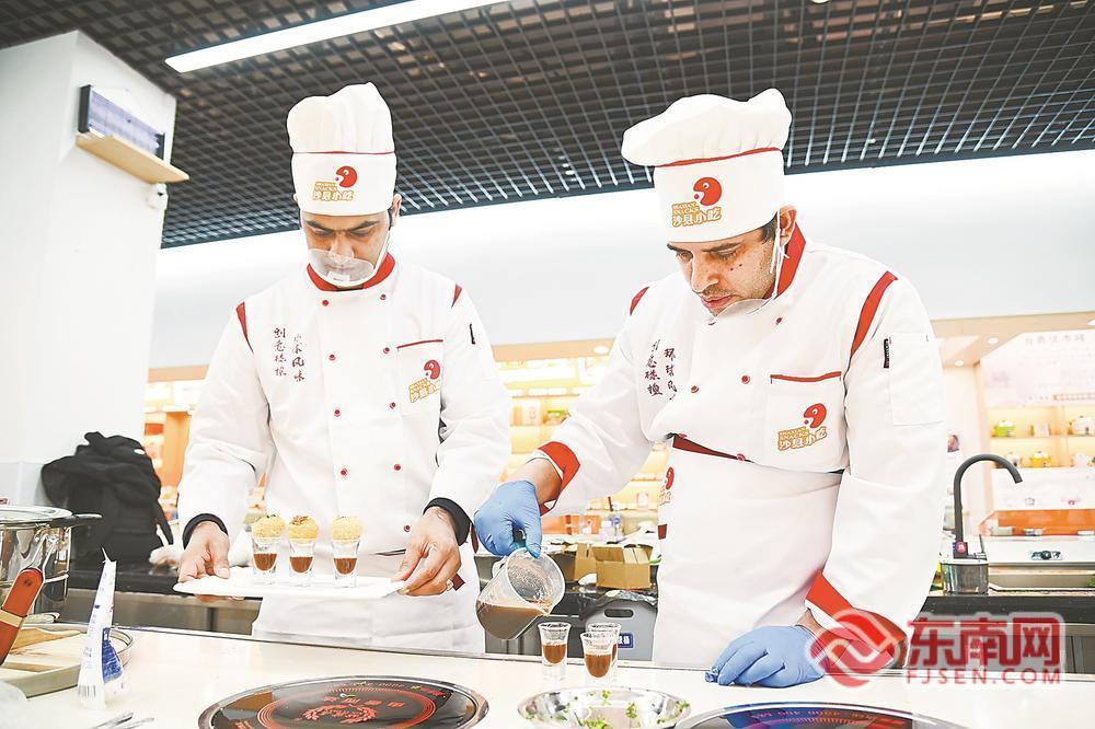 東南網(wǎng)12月11日訊(福建日報記者 莊紫怡 通訊員 薛辰怡 文/圖) 7日,“環(huán)球風(fēng)味·創(chuàng)意碰撞”國際小吃創(chuàng)意大賽在沙縣小吃產(chǎn)業(yè)園舉行,來自俄羅斯、巴基斯坦、摩洛哥、泰國、老撾等國家和地區(qū)的廚師隊伍與我省三明沙縣等地的廚師同場競技,用一道道精致菜品展示廚藝與創(chuàng)意(如圖)。