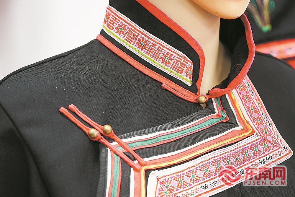 走進青水民俗街的刺繡服飾展示館,映入眼簾的是各式各樣的畬族特色服飾,男士的靛藍衣擺繡著金邊紋路,女士的朱紅長裙綴著銀色流蘇。展示臺上,一系列畬繡文創(chuàng)產(chǎn)品令人眼前一亮,有鑰匙扣、扇子、香袋、枕頭、背包……這些生活用品上都繡著或印著畬繡的特色紋樣。