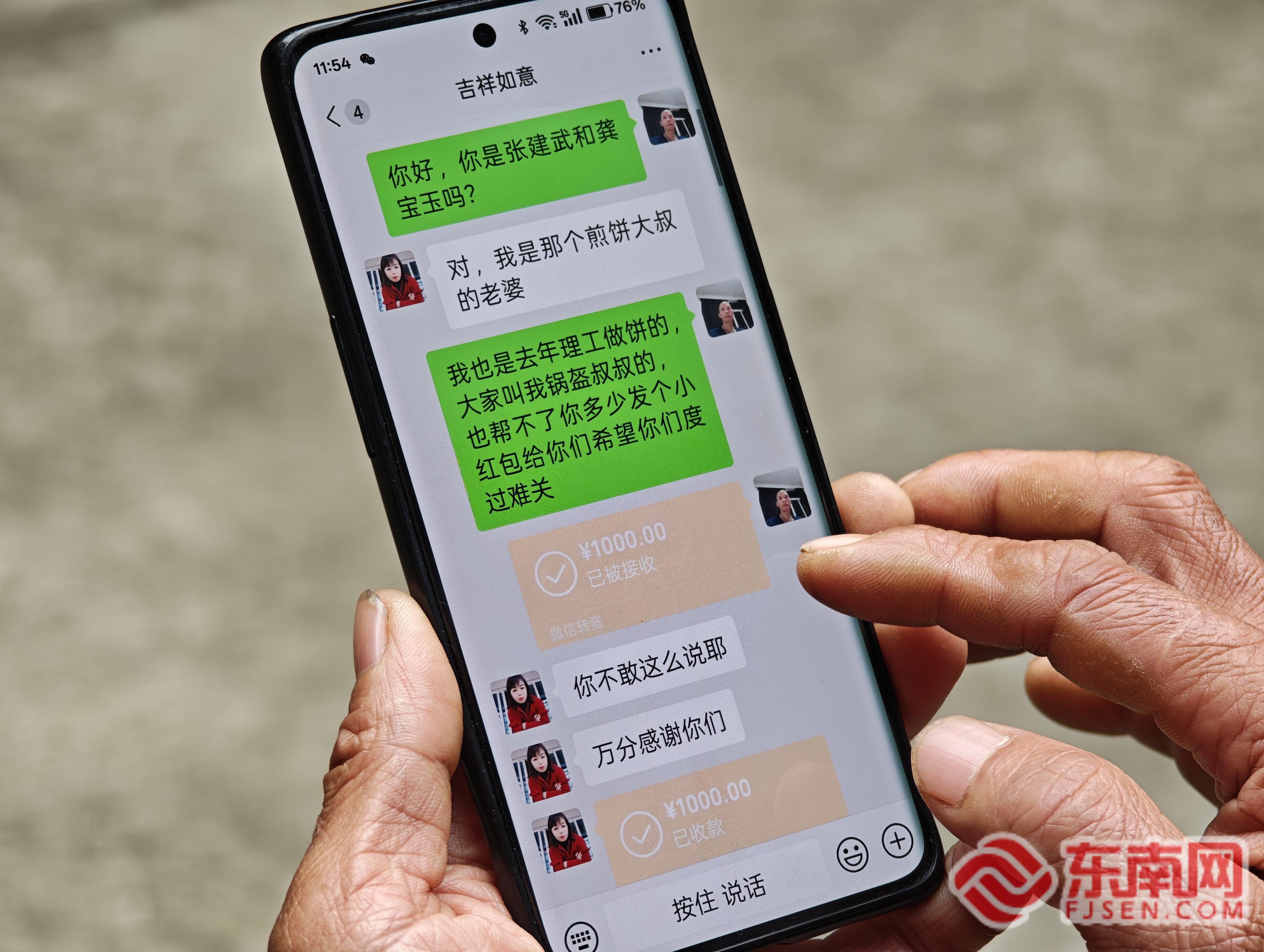 沒(méi)多想,胡偉光主動(dòng)聯(lián)系上張建武的妻子龔寶玉,微信轉(zhuǎn)賬1000元,還附上一句:“幫不了太多,希望你們能渡過(guò)難關(guān)?!?/p>