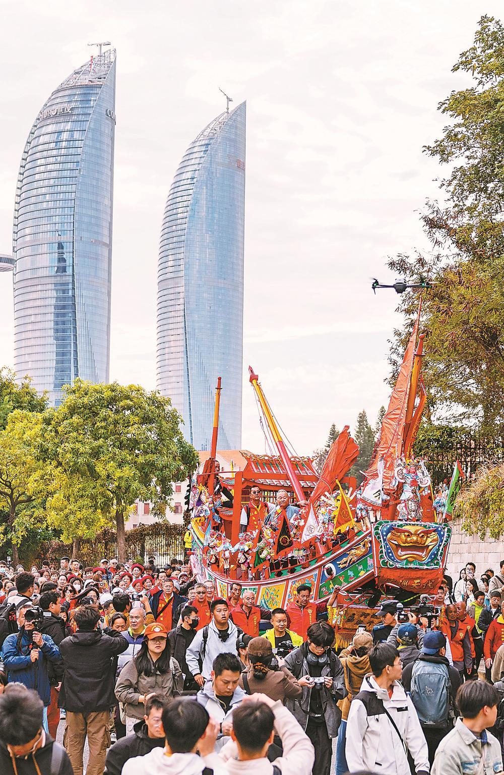 14日,第十二屆廈港送王船活動(dòng)暨首屆中馬聯(lián)合“送王船”活動(dòng)在廈門舉辦。王船長8.88米、寬2.36米,風(fēng)帆上的“海安號(hào)”三個(gè)字尤為醒目。