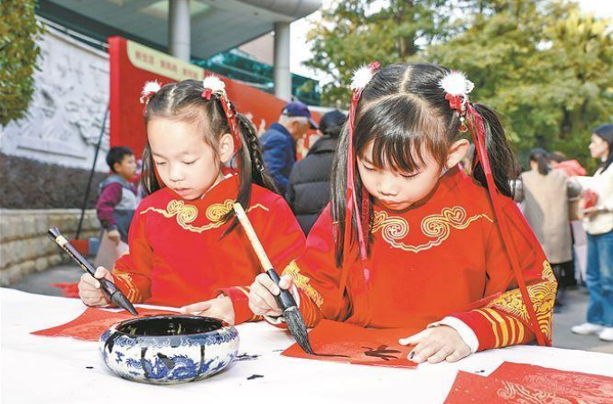 2025年廈門市“我們的節(jié)日·歡樂中國年”文化市集上,小朋友開心書寫自己的福年福運 。(資料圖)圖/市委文明辦 提供