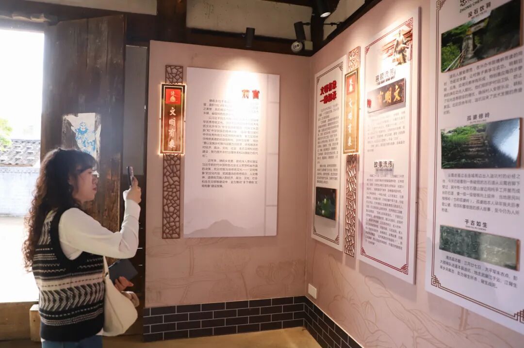 而“文明有象”的浸潤不止于鄉(xiāng)風塑造,更轉化為發(fā)展動能。塘前鄉(xiāng)按照“1+N”工作思路,以“文明有象”為主題,打造迪坑村文明有象文化長廊、文明有象文化主題館、獎狀陳列館等特色項目,著力建設集紅色教育、文明實踐、民俗文化、特色文旅為一體的鄉(xiāng)村文化會客廳,并巧妙地整合文化資源,構建“文化會客廳+文藝+研學”的立體文旅發(fā)展模式。